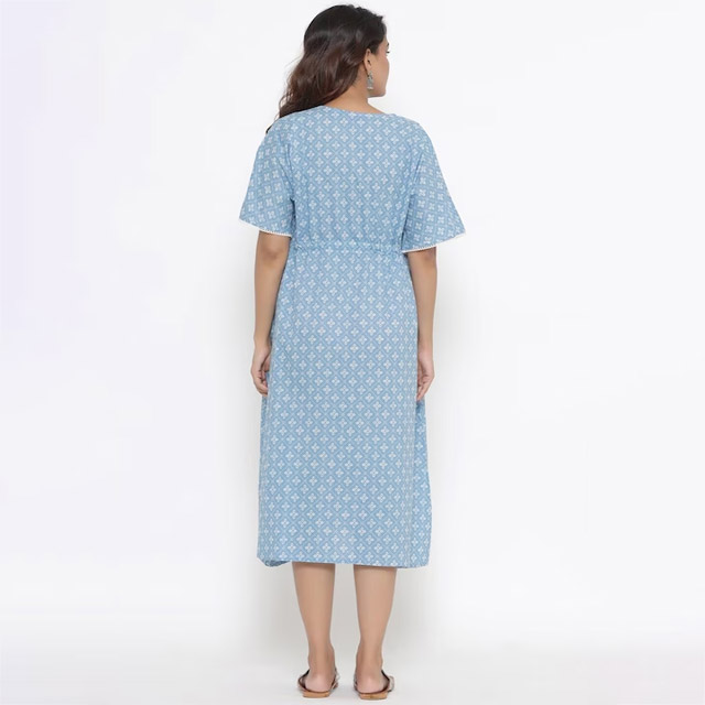 Specifications of Blue Printed Maternity & Nursing Cotton Midi Kaftan Dress