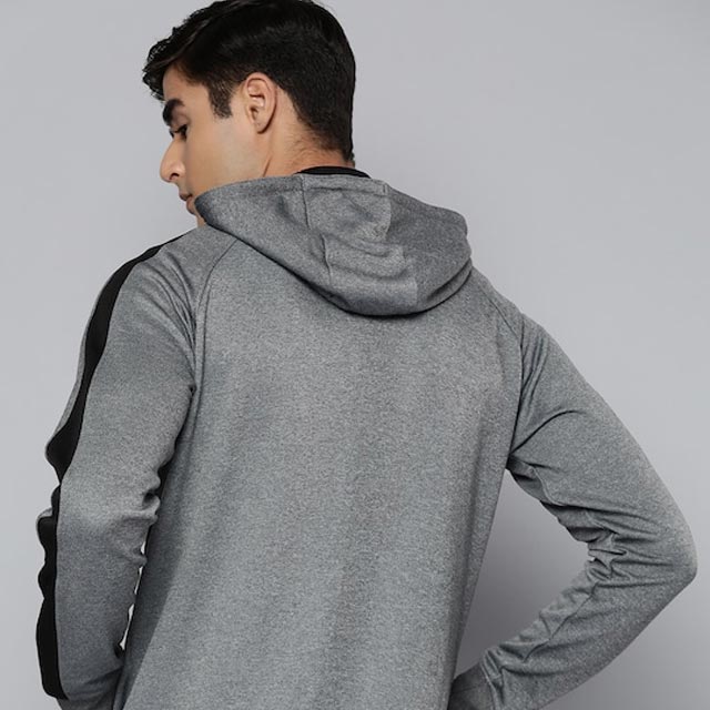 Specifications of Men Charcoal Grey Solid Hooded Zip Detail Rapid-Dry Sweatshirt