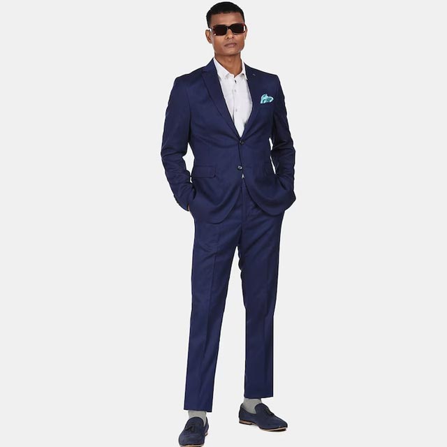 Specifications of Men Navy Blue Solid Single-Breasted Two-Piece Formal Suit