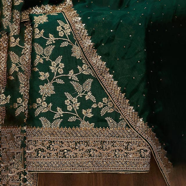 Green and gold-toned embroidered dupatta, has Disclaimer: Images are for referral purposes only. The actual product is unstitched