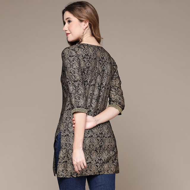 Black and gold-toned straight kurti