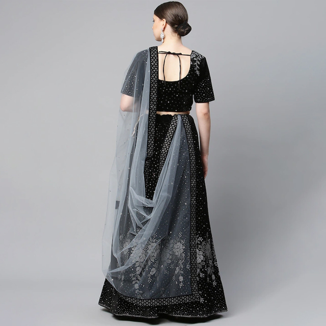 Specifications of Black & Silver-Toned Semi-Stitched Lehenga & Unstitched Blouse & Dupatta