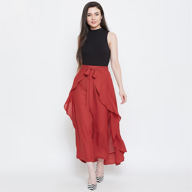 Specifications of Women Rust Solid Wrap On Skirt Palazzo