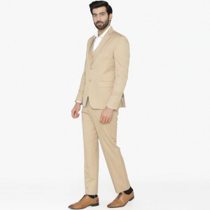 Men Beige Solid Single-Breasted Regular Fit Suit