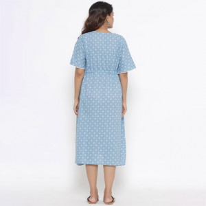 Blue Printed Maternity & Nursing Cotton Midi Kaftan Dress