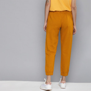 Women Mustard Yellow Solid Pure Cotton Joggers