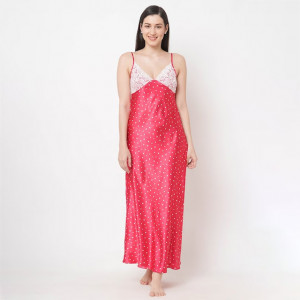 Women Red Printed Maxi Nightdress